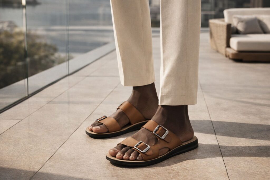 Num mercado dominado pela produção em massa, a Arthur Ferranni escolheu um caminho diferente. Criamos sandálias masculinas que combinam elegância contemporânea, design refinado e atenção minuciosa aos detalhes. Cada modelo é desenvolvido com materiais cuidadosamente selecionados e passa por um processo rigoroso de acabamento e refinamento antes de chegar ao cliente. A Ferranni não é sobre quantidade. É sobre identidade.